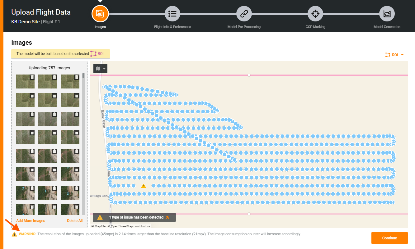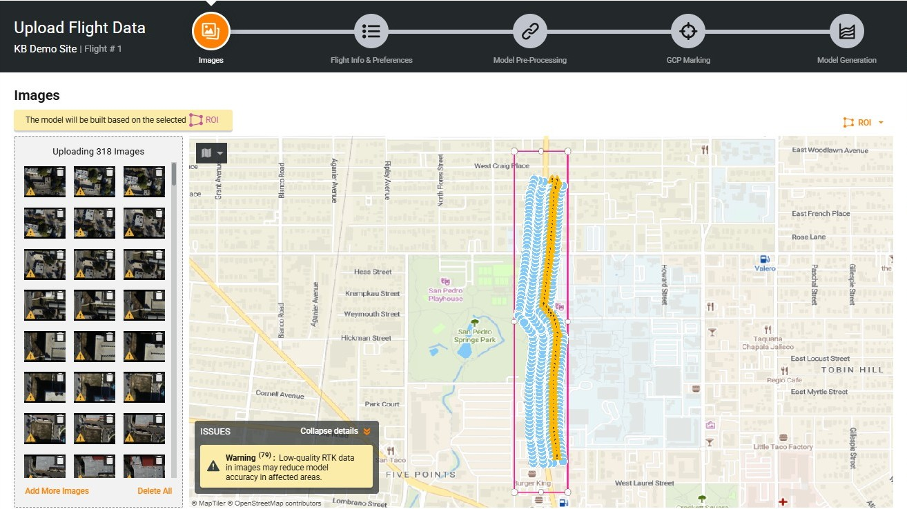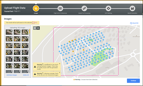 Any issues will appear as warnings. You can choose to fix or ignore them, but fixing them, when possible, helps produce more accurate image alignment and a more precise model.