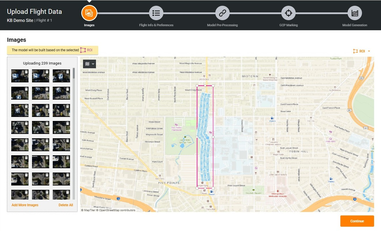 Once images are added, a Region of Interest (ROI) rectangle appears. You can adjust this to upload only a subset of images if required.
