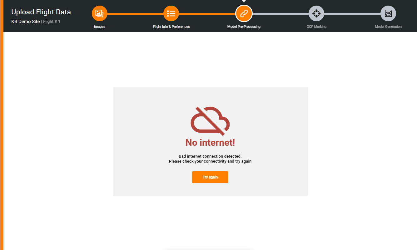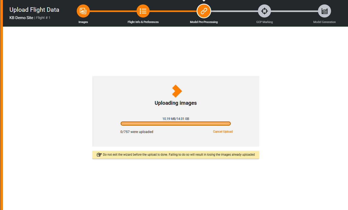 There are error notifications that appear when uploading images that will prevent DatuBIM from progressing to the next stage: