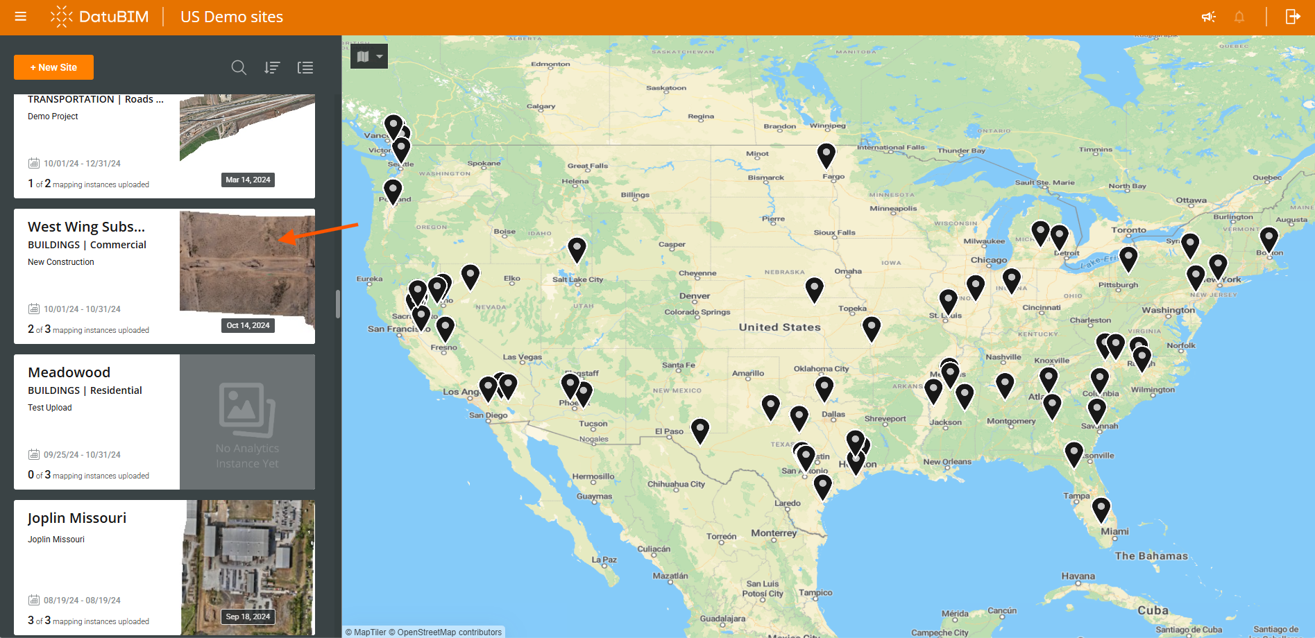- For an existing site with flights or previous models: The map will display the location based on the uploaded images.