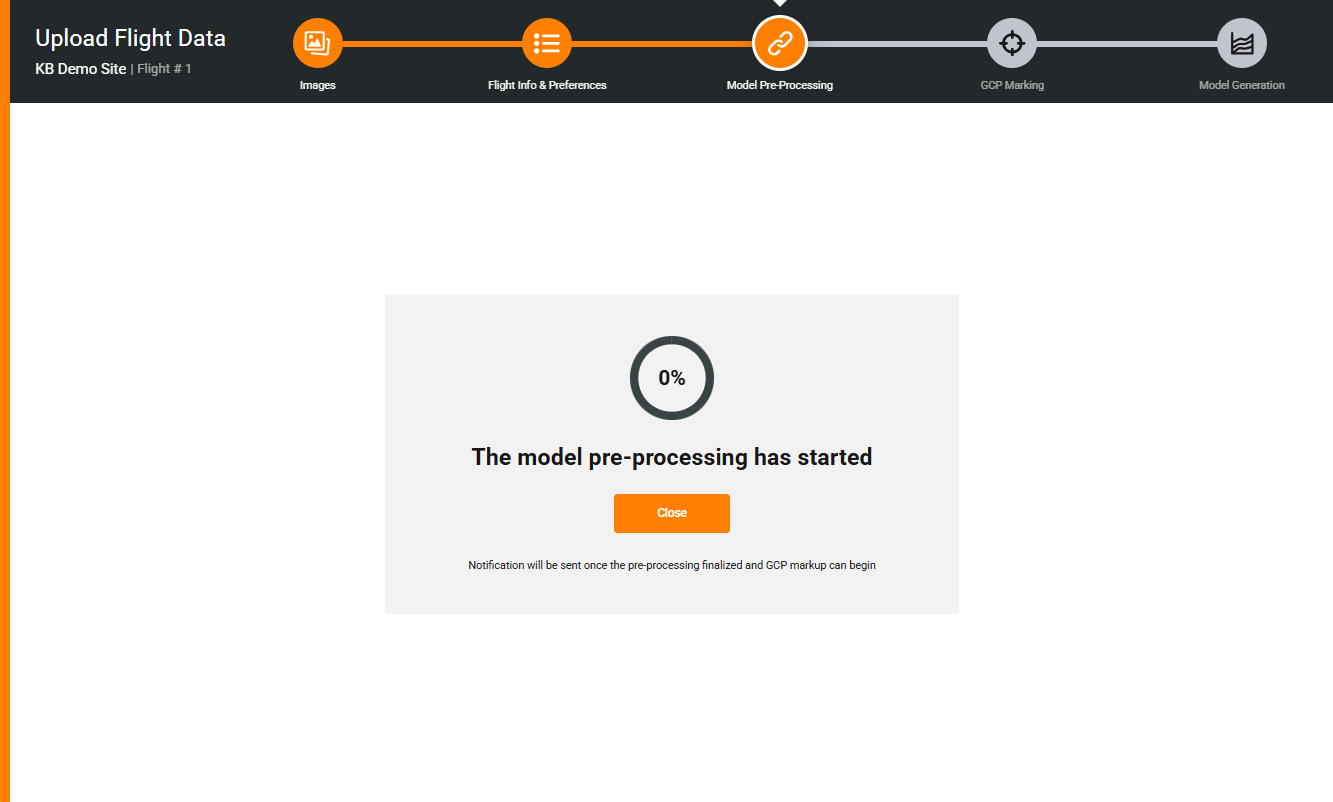 After linking is complete, the next step the next step will depend on your geo-referencing choice - either GCP marking or automatic model generation.
