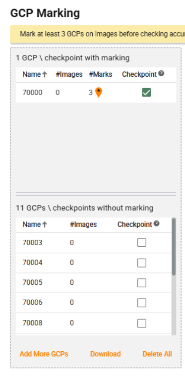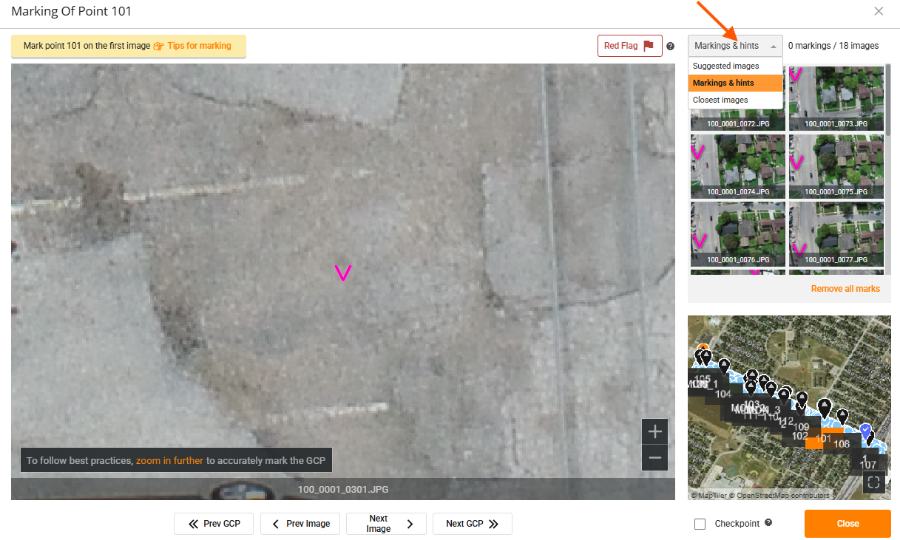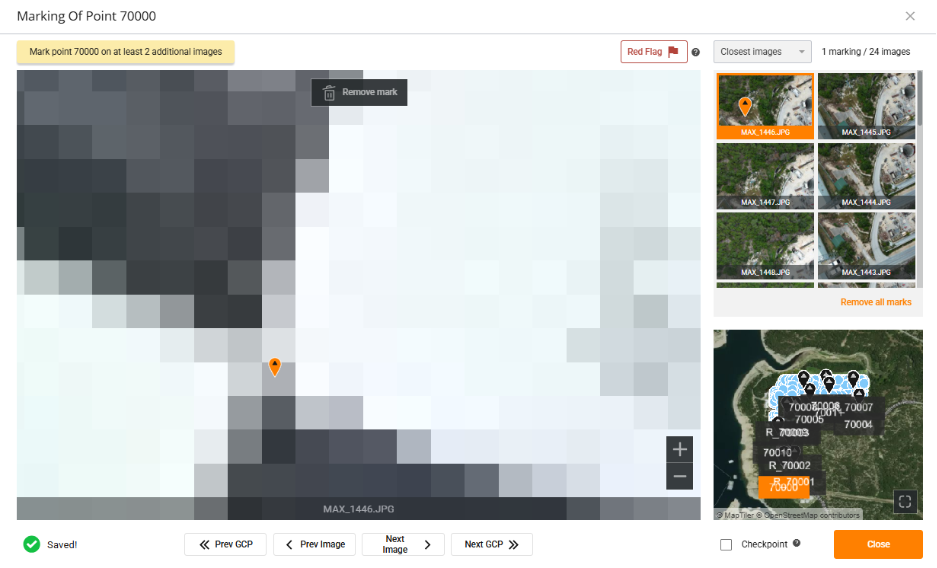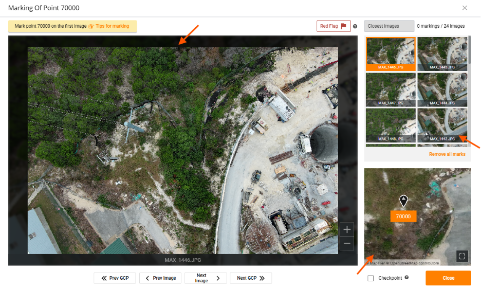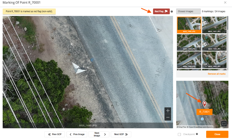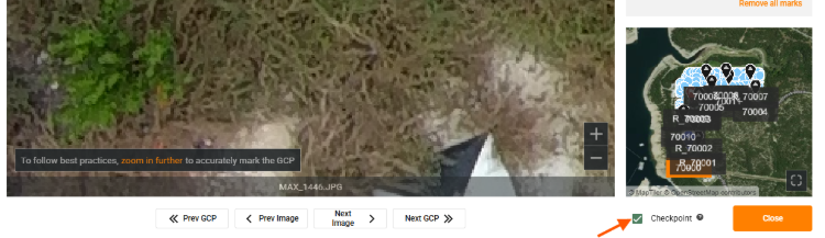 - You can mark a GCP as a checkpoint on the image as you are reviewing the GCP (as seen below):