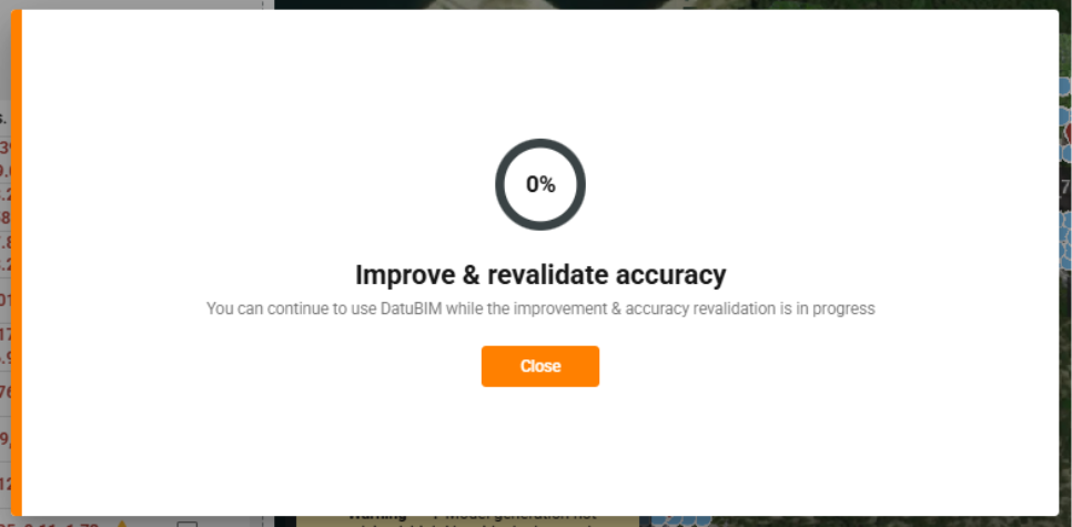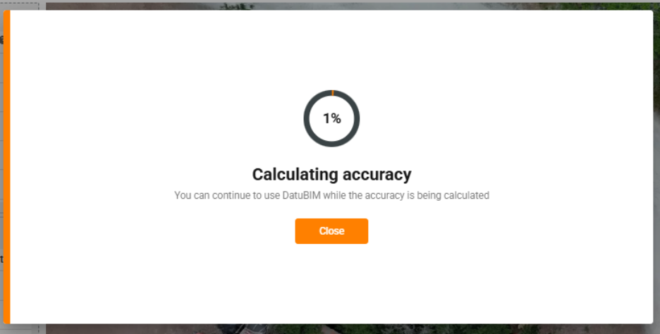 DatuBIM will now work in the background to improve and revalidate the accuracy of your GCP markings and you can close the window, as it worked with the initial accuracy calculation.