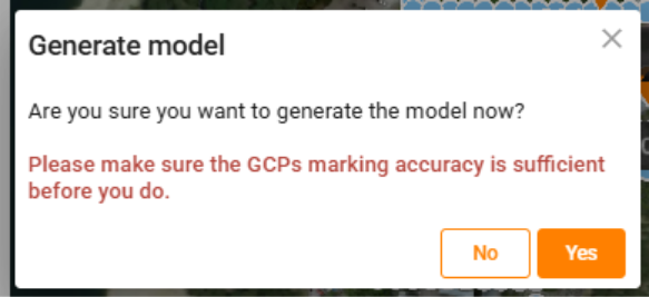 Once you select "Yes", you will see that model generation has started. You can close this window and continue your work.