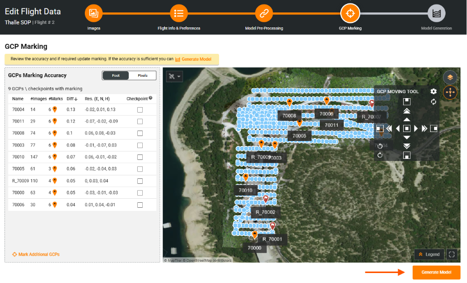 Now that your GCPs are marked accurately, click "Generate Model" to begin the final step in the process.
