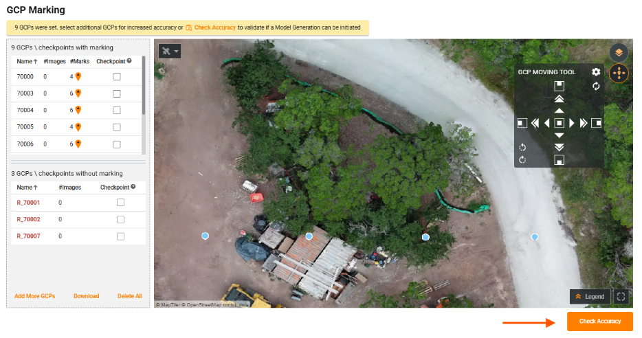 - Check accuracy - Once this is done, it will keep the GCPs in the newly aligned area.